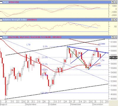 O gráfico mostra que o WW funcionou como um pull-back sobre a LTB secundária formada a partir de abril deste ano, confirmando a tendência de alta no médio e longo prazo. No curto prazo, a tendência de alta se acentuou, mas com resistência nos 59 mil pontos. Dezembro tradicionalmente é um mês de alta.